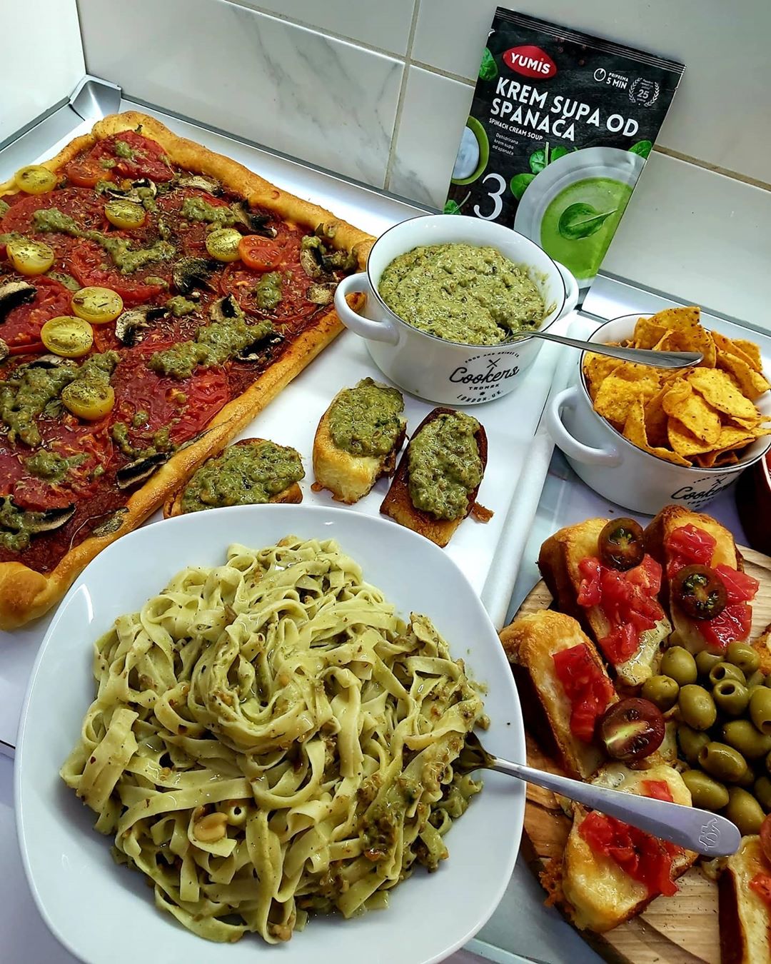 Večeras sam spremala ,, lazni pesto ,, sos koji moze da se koristi za bruskete, pice, kao umak za tortilje , za paste naravno itd..Sprema se vrlo lako , i preukusan je.