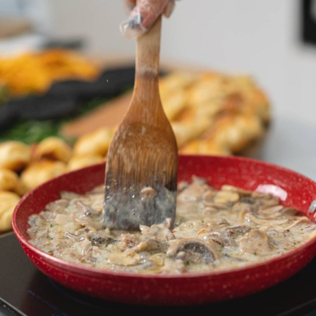 Moja preporuka je šerpa od 5l kako bi imali dobar pregled o tome da se svo meso sa pečurkama lepo obradilo.