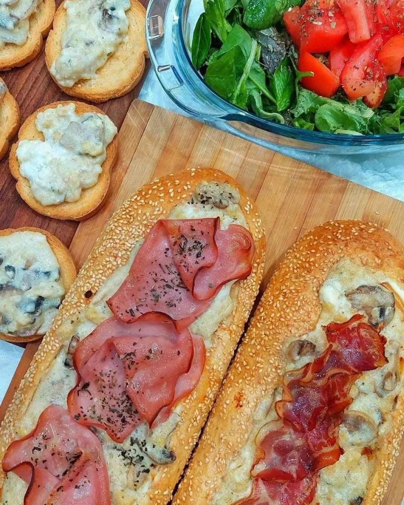opet krompir,beli sos sa pečurkama (pečurke 1 kg) i kajmakom, tanka slanina..( 300gr)