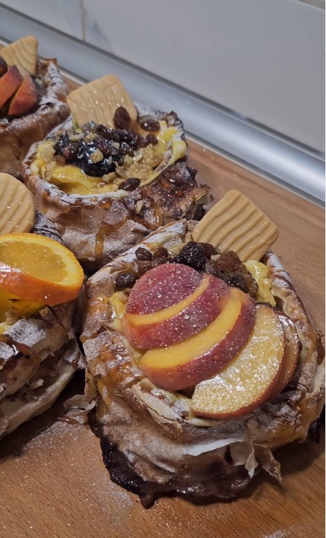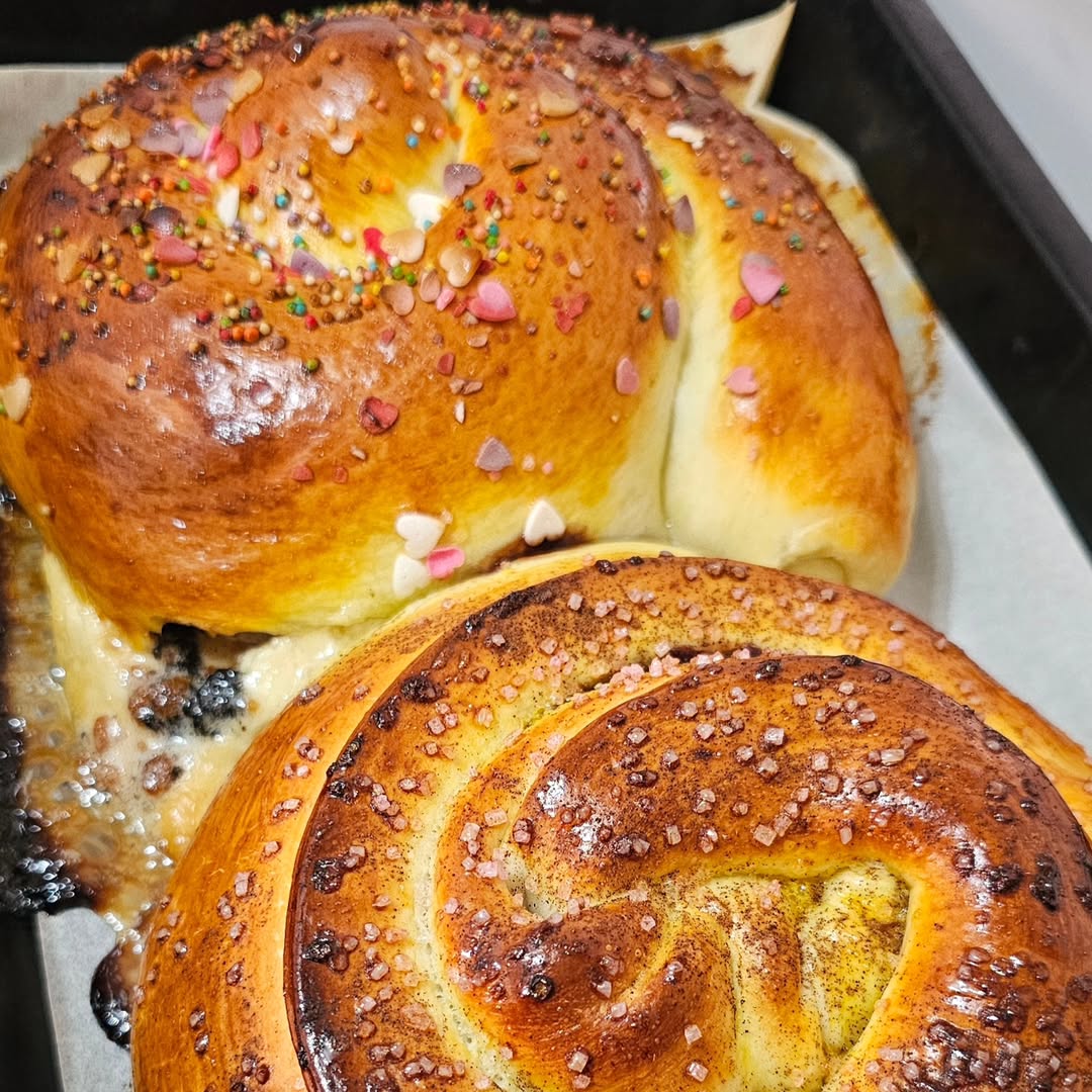 Premažite štrudle sa malo ulja i vode (50:50) da dobiju sjaj, za zuckastu boju malo kurkume🤞